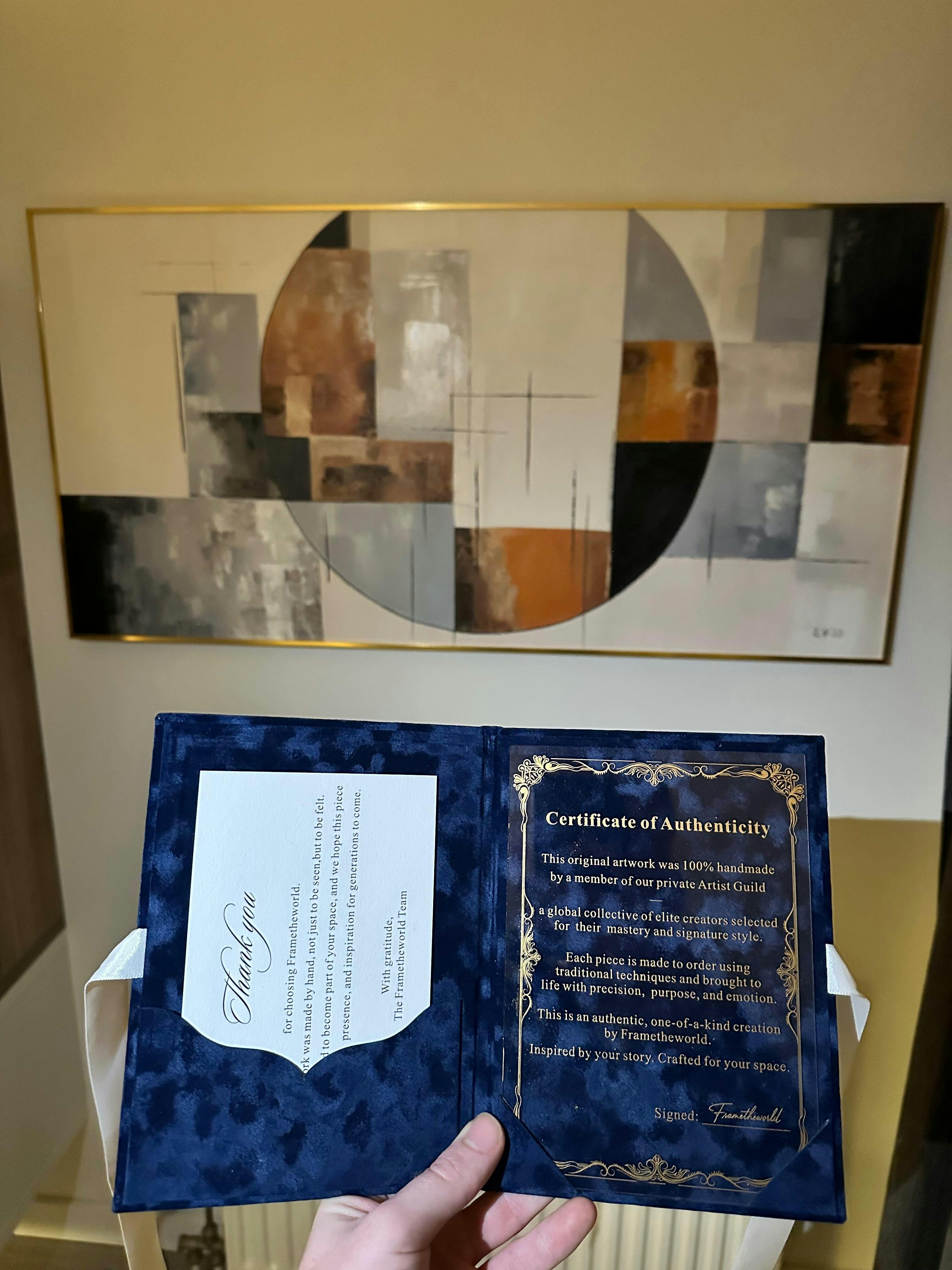 Created entirely by hand using premium oil paints, Sandstone Circle features layered textures, expressive brushwork, and a refined matte finish that adds depth and character. The striking rectangular format and central circle create a sense of stability and modern equilibrium, making it the perfect statement piece for living rooms, bedrooms, dining rooms, hallways, or offices.